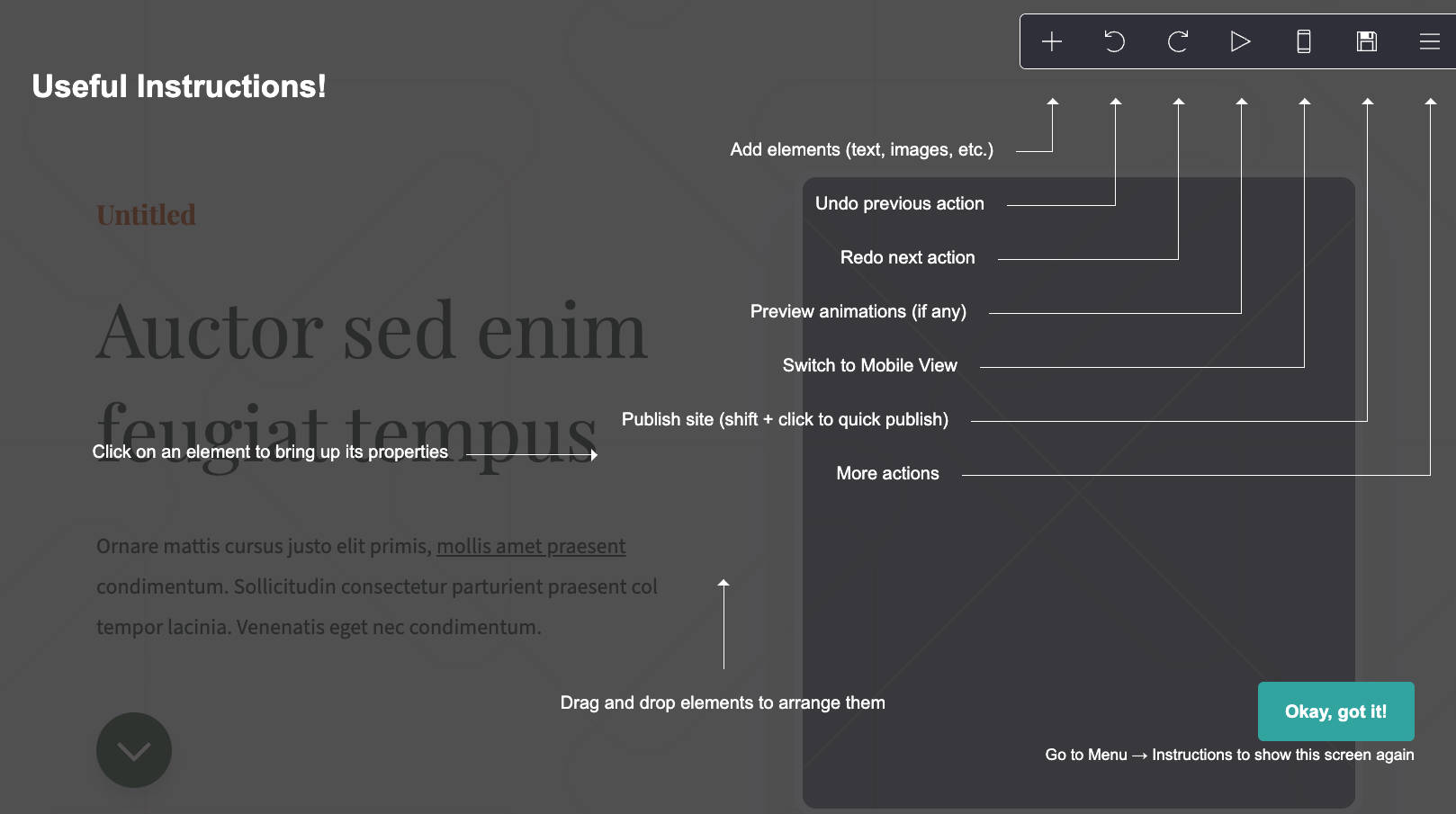 Schermo per le istruzioni di CARRD.CO